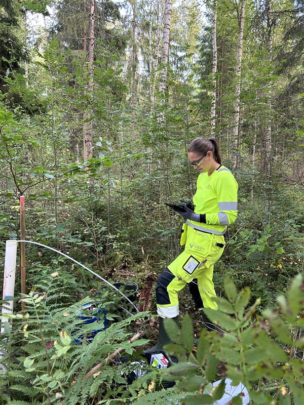Vi ser fram emot att jobba vidare med fler spännande uppdrag inom området! Här nedan bjuder vi på några bilder från fältveckan då våra kollegor Hanna och Sigrid var ute i skogen och tog grundvattenprover samt utförde slugtester.